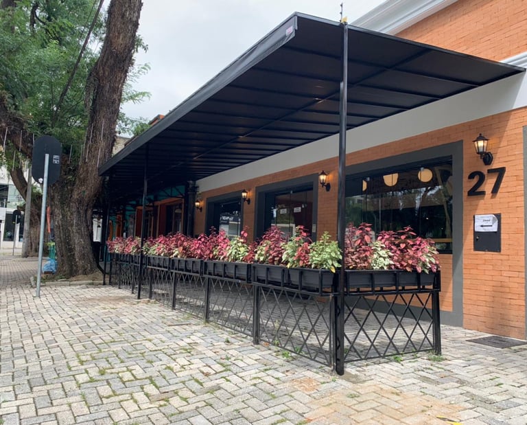 Os toldos garantem sombra no calor e proteção na chuva.